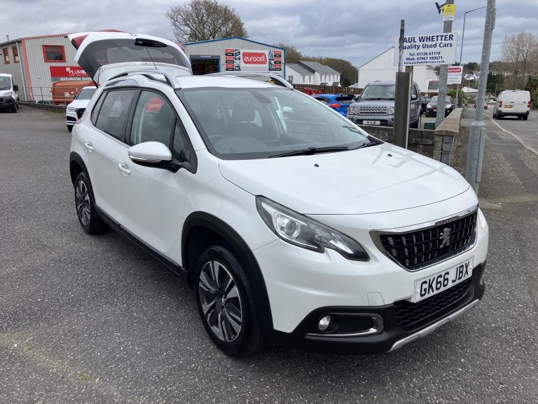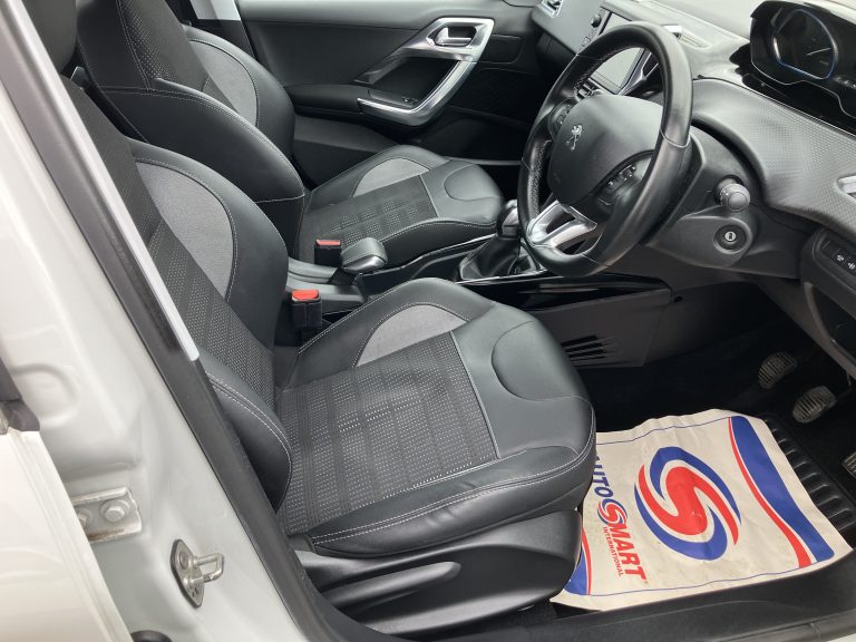 2016 16 Peugeot 2008 Allure 1200cc Petrol finished in white with half leather trim this one owner from new face lift model has only covered 67,000 miles with a full service history it comes fitted with alloy wheels front fog lights roof rails rear parking sensors and camera rear privacy glass half leather rear isofix electric front and rear windows power steering apple play blue tooth cruise sport wheel with multi function controls climate control usb auto lights and wipers heated front and rear screens electric folding mirrors .We are now working by appointment only With a Deposit of £500 .00 you could own this car from £166.56per month thats as little as £38.43per week.